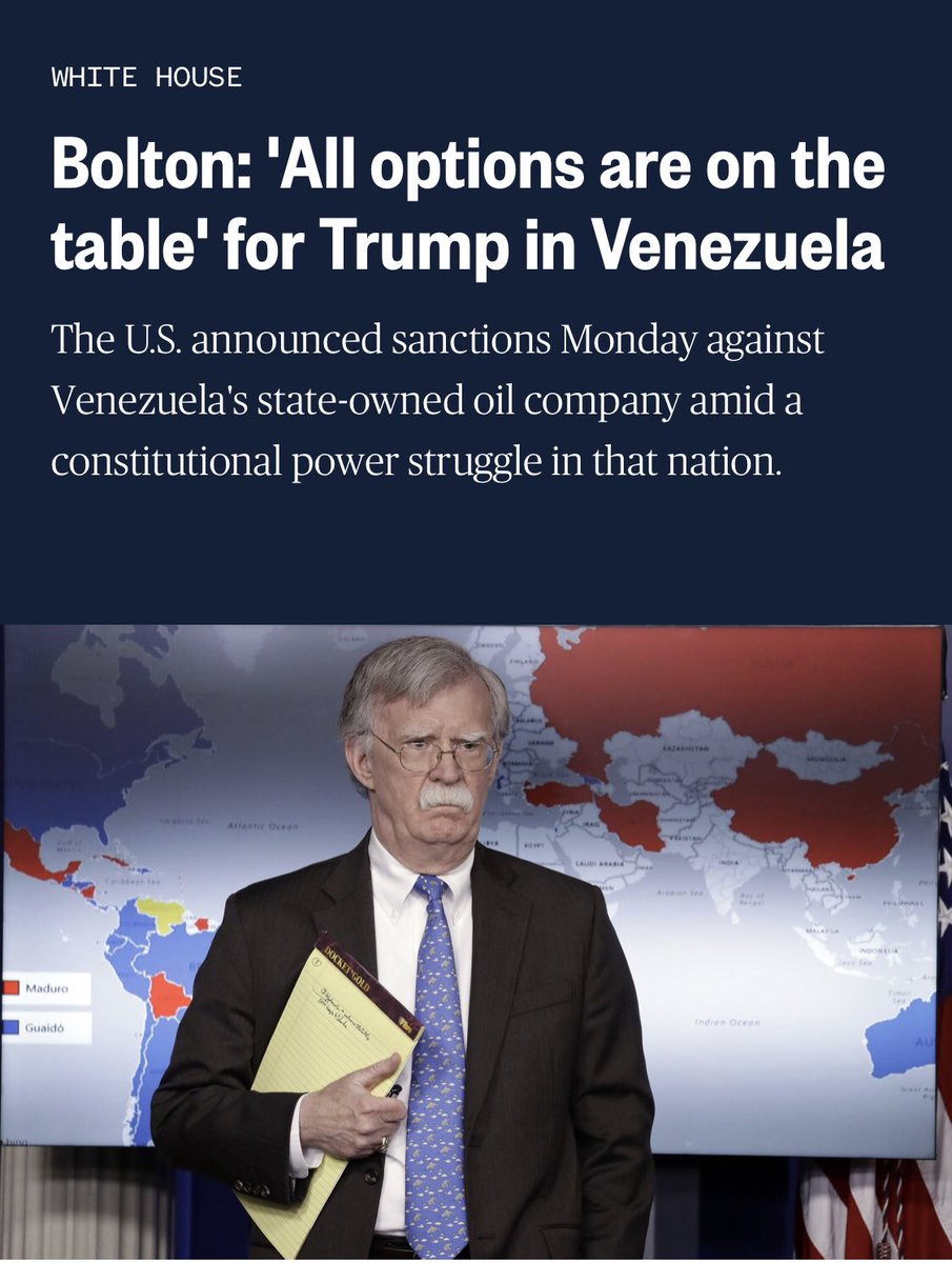John #Bolton states regime change in #Venezuela is about the country’s #oil. pic.twitter.com/8UNZugRMKs