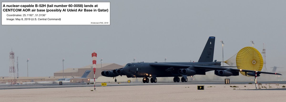 It appears that at least two of the B-52Hs in the Bomber Task Force sent to Middle East are nuclear-capable. https://t.co/Hjs7Lsj51J https://t.co/4T1TZLiKINhttps://t.co/kxAsRZtYG4 pic.twitter.com/WweEYV27LK