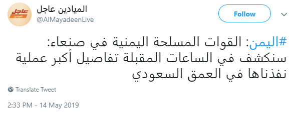 Η επίσημη τηλεόραση των Χούθι, η Masirah TV, ανακοίνωσε πως συνολικά επιχείρησαν 7 drone εναντίον σαουδαραβικών εγκαταστάσεων στις πόλεις Dawadmi και Afif της Saudi Aramco της κεντρικής Σαουδικής Αραβίας!