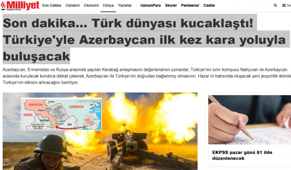 Η διάνοιξη του διαδρόμου στο Ναχιτσεβάν προβλέπεται από τη συμφωνία κατάπαυσης του πυρός και παραχωρείται ως αντάλλαγμα για τον διάδρομο του Λατσίν μέσω του οποίου η Αρμενία θα συνδέεται με το Ναγκόρνο Καραμπάχ.