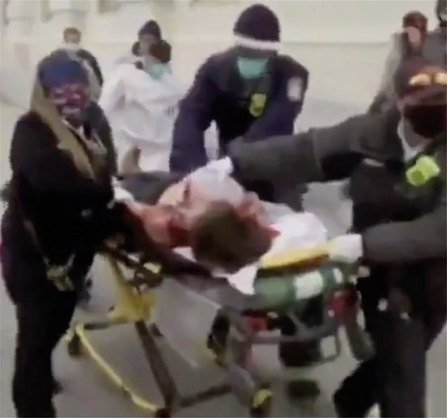 BREAKING: Woman rushed out of Capitol building on a stretcher, "covered in blood" pic.twitter.com/IKmMmHNyZC