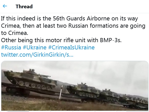 Την 56η Αερομεταφερόμενη Ταξιαρχία στέλνει η Ρωσία στην Κριμαία στο πλαίσιο μιας άνευ προηγουμένου στρατιωτικής κινητοποίησης εν μέσω της διαρκούς κρίσης με την Ουκρανία η οποία λαμβάνει επικίνδυνες διαστάσεις το τελευταίο διάστημα, με σφοδρή ανταλλαγή πυρών βαρέων όπλων να σημειώνεται τις τελευταίες ώρες.