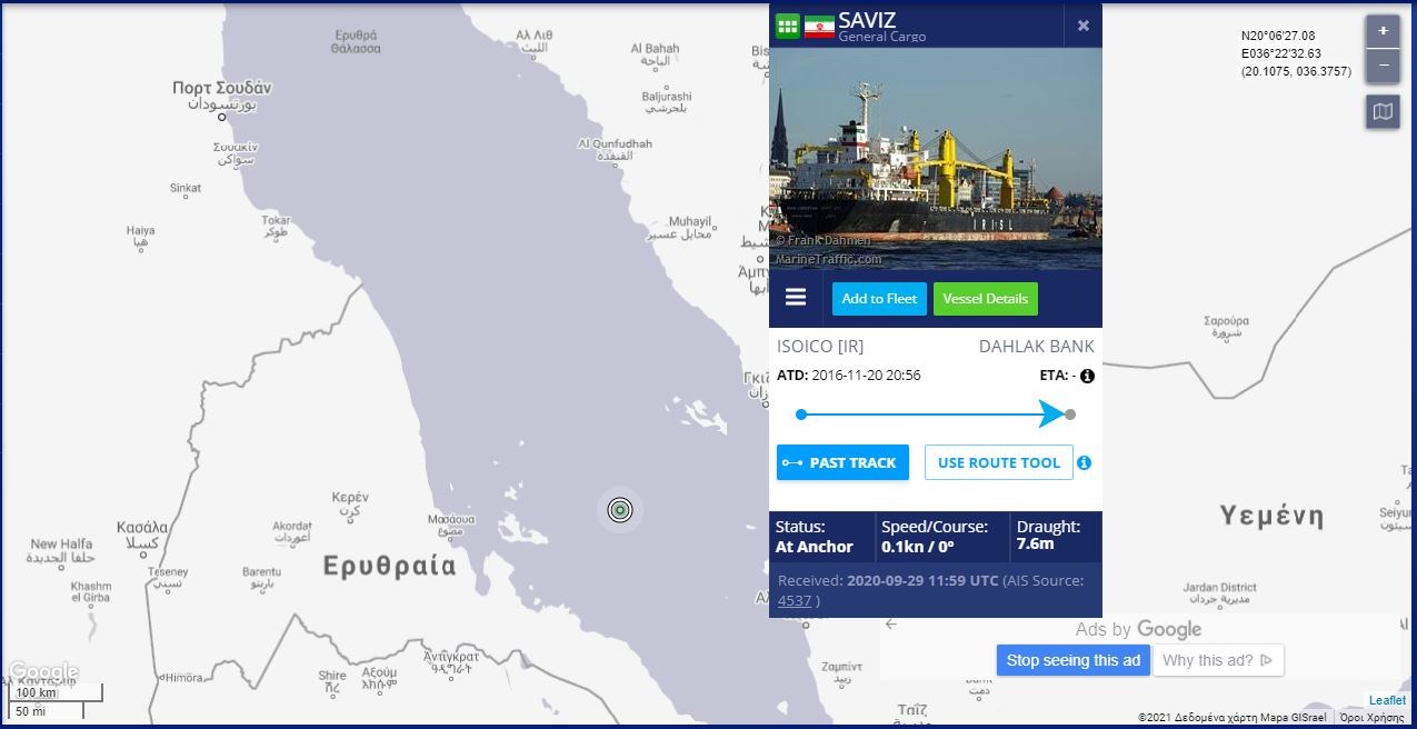 Το ιρανικό πλοίο Saviz, εδώ και περίπου δύο χρόνια ήταν αγκυροβολημένο στα ανοιχτά της Ερυθραίας, στην Ερυθρά Θάλασσα, και συγκεκριμένα λίγο πιο πάνω από το Τζιμπουτί και απέναντι από τη Σαουδική Αραβία.