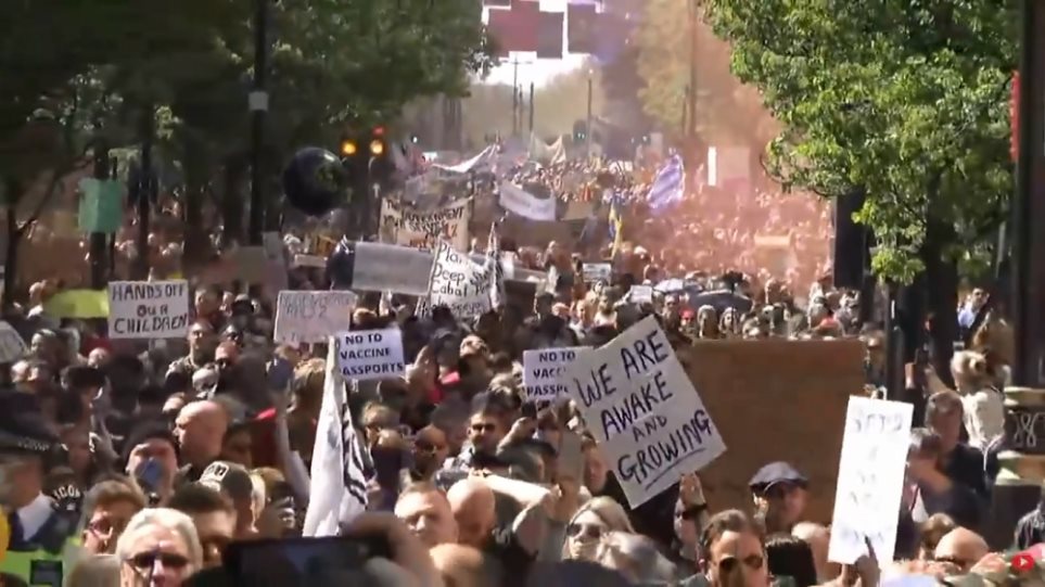 Σε εξέλιξη βρίσκεται αυτή την ώρα, διαδήλωση κατά του lockdown και των περιοριστικών μέτρων κατά του κορωνοϊού στο Λονδίνο.