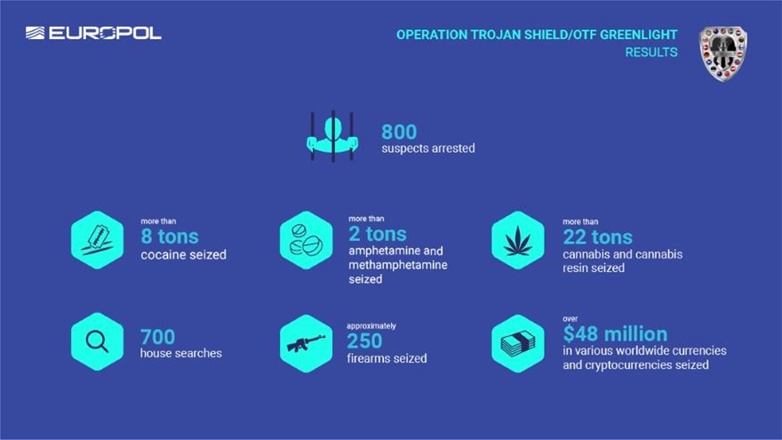 Η Europol ανακοίνωσε σε συνέντευξη Τύπου τα αποτελέσματα της γιγαντιαίας επιχείρησης, που έγινε εφικτή μετά την αποκρυπτογράφηση κωδικοποιημένων επικοινωνιών μεταξύ κακοποιών.