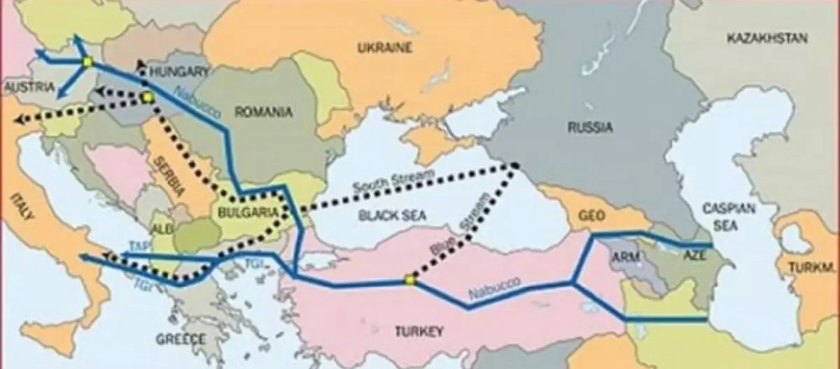 Όπως φαίνεται στον χάρτη η διαδρομή των αζερικών αγωγών Nabucco και TAP είναι πολύ συγκεκριμένη: Ξεκινούν από την Κασπία και φτάνουν μέχρι την κεντρική Ευρώπη που έχει πληγεί καίρια από την απόφαση Ζελένσκι να κόψει το ρωσικό φυσικό αέριο και περνάνε στην Ιταλία.