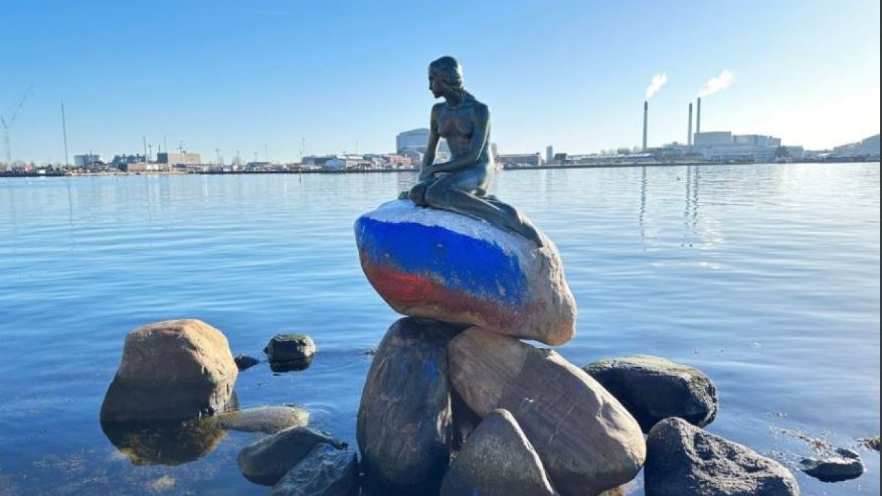 Η μικρή γοργόνα, το σύμβολο της Κοπεγχάγης και της Δανίας, βανδαλίστηκε κατά την διάρκεια της νύκτας και μία μεγάλη ρωσική σημαία ζωγραφίστηκε στην βάση της.
