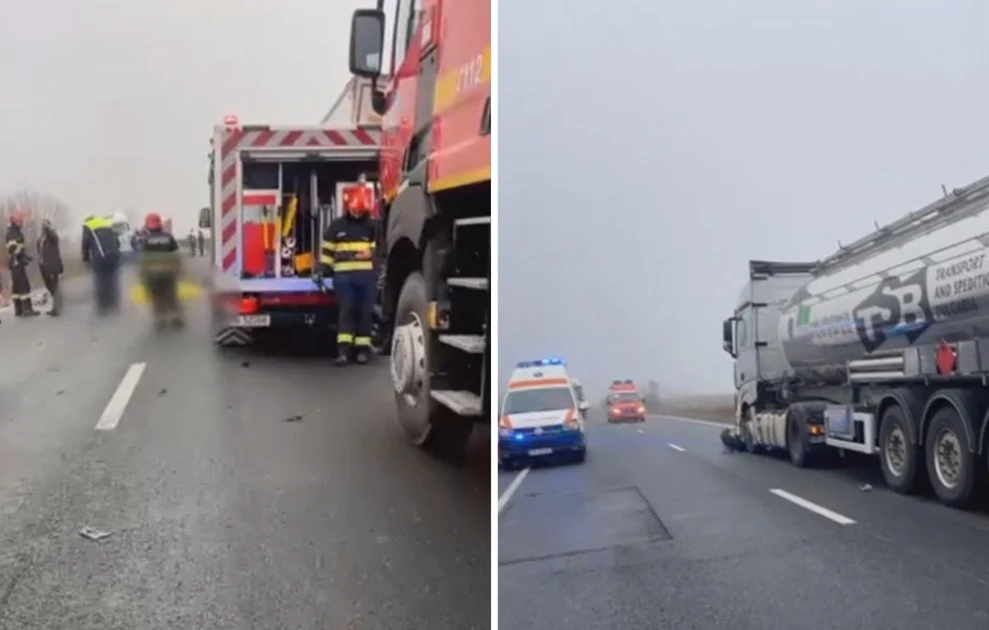 Η νταλίκα της εταιρείας «Talay», με την οποία συγκρούστηκε μετωπικά το βαν, φέρει σοβαρές ζημιές στο μπροστινό της μέρος, ενώ οι δυνάμεις της SMURD βρίσκονται σε πλήρη κινητοποίηση για την παροχή πρώτων βοηθειών στους τραυματίες.
