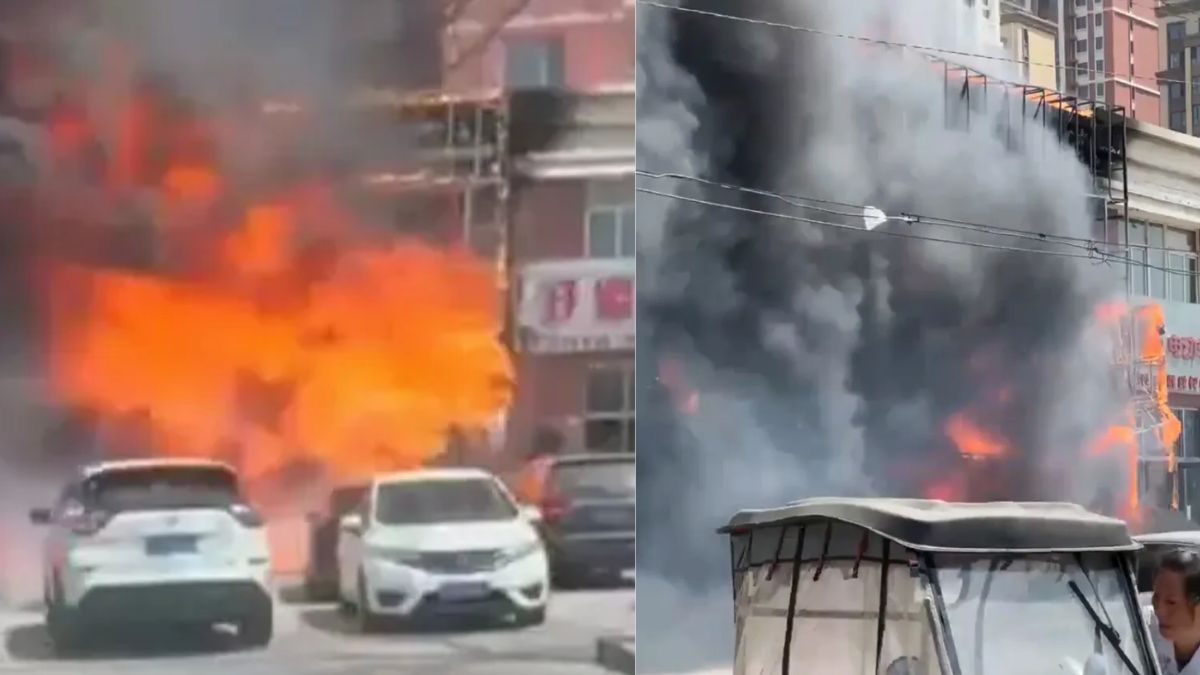 Σε βίντεο που δημοσιοποιήθηκαν από τα κινεζικά μέσα ενημέρωσης φαίνονται μεγάλες φλόγες να «καταπίνουν» ένα εστιατόριο και πυκνός, μαύρος καπνός να υψώνεται στον ουρανό.