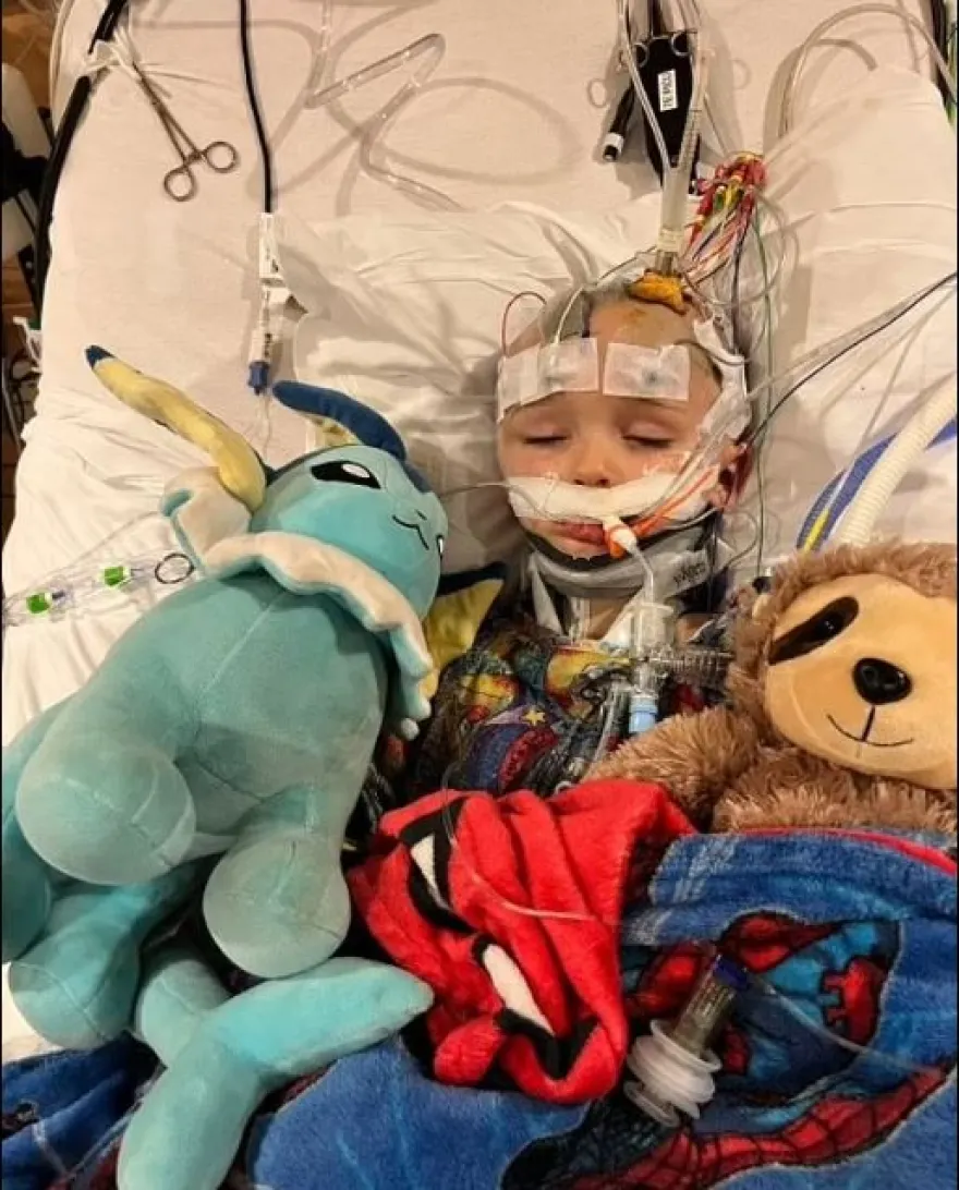 Noah Brown, 3, is pictured gravely-ill in hospital after being beaten with belt 'by babysitter aged TWELVE who got upset with him for crying' https://t.co/PMl7Y7Vg58 pic.twitter.com/7ufDzNhR4z