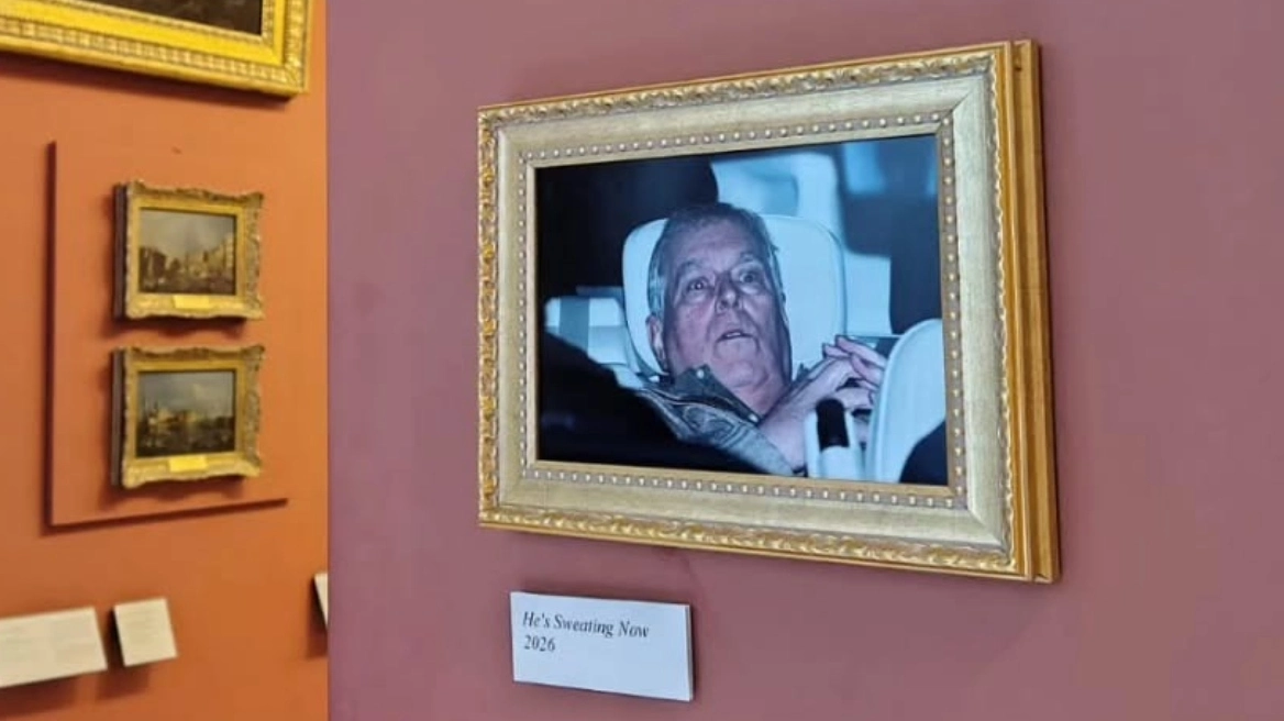 Ακτιβιστές κρέμασαν φωτογραφία από την σύλληψη του έκπτωτου πρίγκιπα Άντριου στο μουσείο του Λούβρου στο Παρίσι της Γαλλίας.