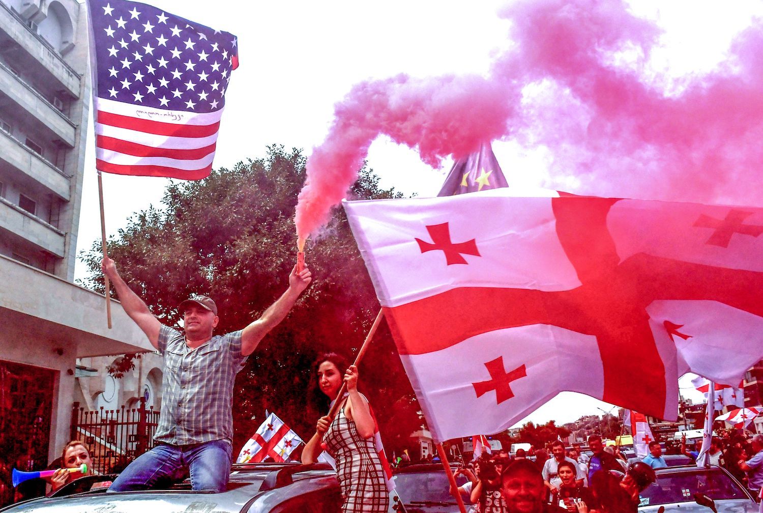Η καταδίκη από τη Δύση και η έντονη παρουσία αμερικανικών σημαιών στις διαδηλώσεις ενισχύουν τις υποψίες για εξωτερική εμπλοκή στις εσωτερικές υποθέσεις της Γεωργίας.