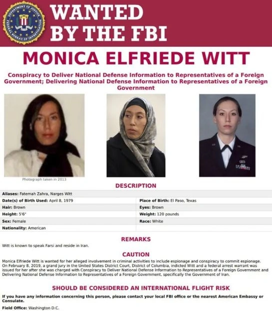 Η 46χρονη Monica Witt υπηρέτησε για πάνω από δέκα χρόνια ως ειδικός στην αντικατασκοπεία και είχε αποκτήσει φήμη ως ιδιαίτερα ικανό και αξιόπιστο στέλεχος των αμερικανικών ενόπλων δυνάμεων, πριν στρατολογηθεί από τους Φρουρούς της Ισλαμικής Επανάστασης.