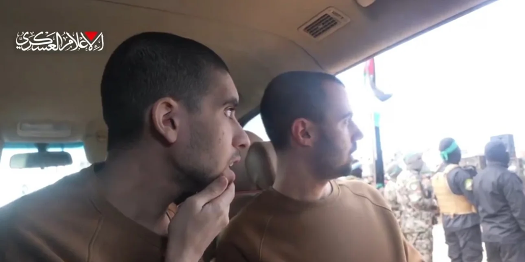 H Χαμάς το βράδυ του Σαββάτου έδωσε στη δημοσιότητα ένα βίντεο το οποίο δείχνει δύο Ισραηλινούς ομήρους να κοιτάζουν την απελευθέρωση τριών άλλων ομήρων που είχαν παραδοθεί νωρίτερα στον Ερυθρό Σταυρό.