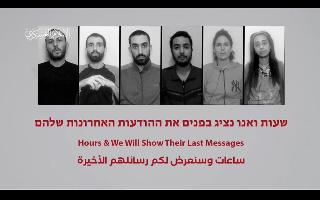 Η Χαμάς, δημοσίευσε στα μέσα κοινωνικής δικτύωσης, ένα βίντεο με τους έξι ομήρους που εντοπίστηκαν νεκροί πριν από λίγες ώρες στη Ράφα από τον ισραηλινό Στρατό.
