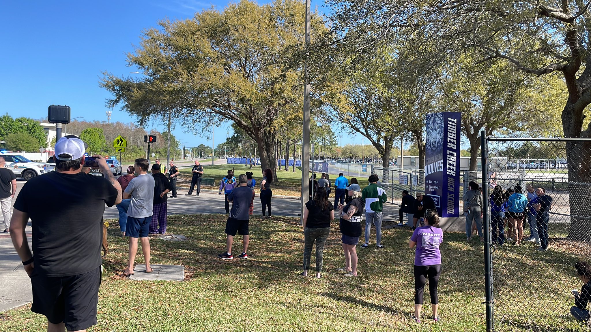 HAPPENING NOW: Scene at Timber Creek High School. Parents out. I hear a “suspicious person” was in the area, possibly armed.