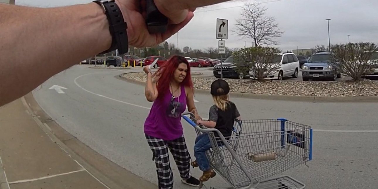 Βίντεο από κάμερα σώματος αστυνομικού που δόθηκε στη δημοσιότητα τη δείχνει να κρατά το μαχαίρι πάνω από το αγόρι, το οποίο καθόταν σε καρότσι.