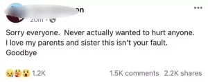 Επίσης στα social media κοινοποιήθηκε μια ανάρτηση που έκανε ο φερόμενος ως πιλότος του αεροπλάνου, στην οποία ανέφερε πως δεν ήθελε να βλάψει κανέναν, ότι αγαπά τους γονείς και την αδελφή του κι έκλεινε με τη λέξη «Αντίο».