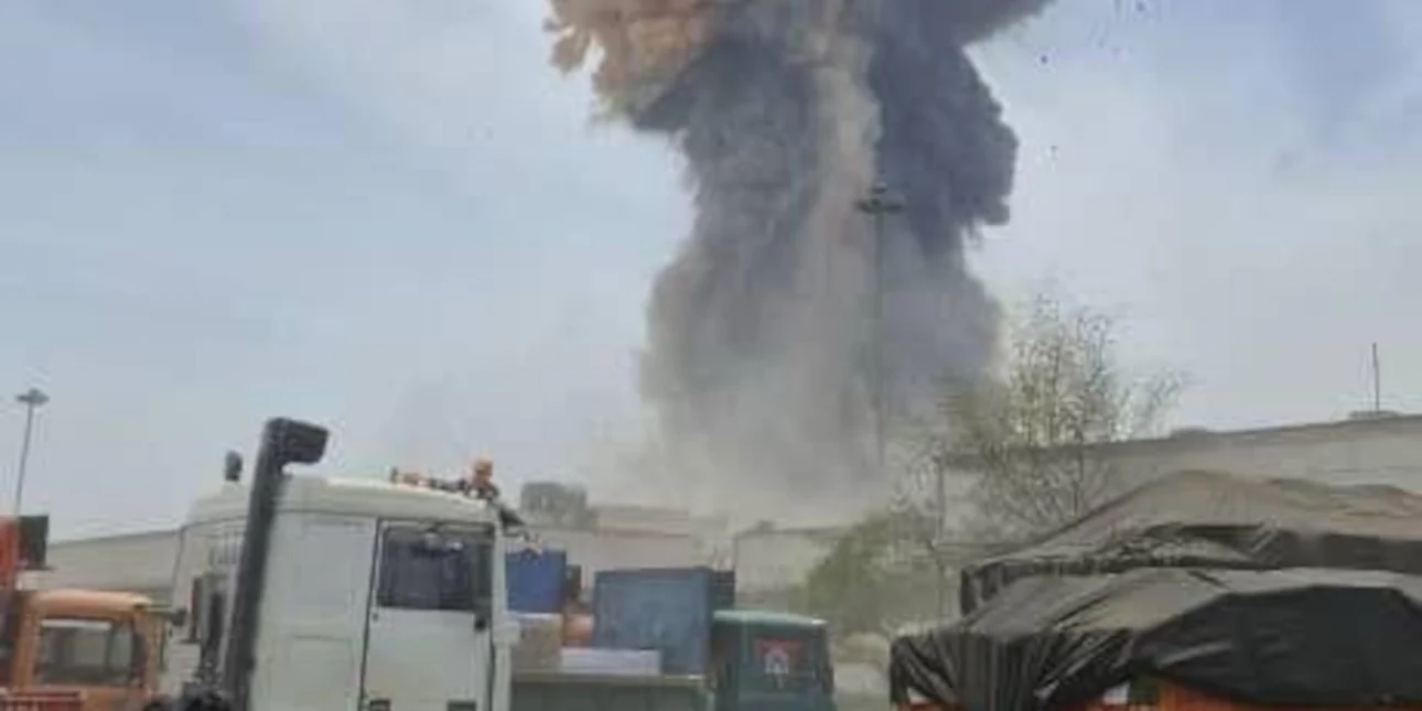 A powerful blast ripped through the Sina container yard at Bandar Abbas, sending huge fireballs and thick black smoke into the air.