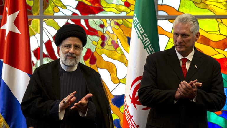 Οι κυβερνήσεις της Κούβας και του Ιράν εξέφρασαν χθες Πέμπτη τη βούλησή τους να ενισχύσουν τις σχέσεις τους για να αντιμετωπίσουν την «επιθετική πολιτική» των ΗΠΑ, με την ευκαιρία της επίσημης επίσκεψης στην Αβάνα του Ιρανού προέδρου Εμπραχίμ Ραϊσί, ο οποίος ολοκλήρωσε στη νήσο υπό κομμουνιστική κυβέρνηση την περιοδεία του στη Λατινική Αμερική.