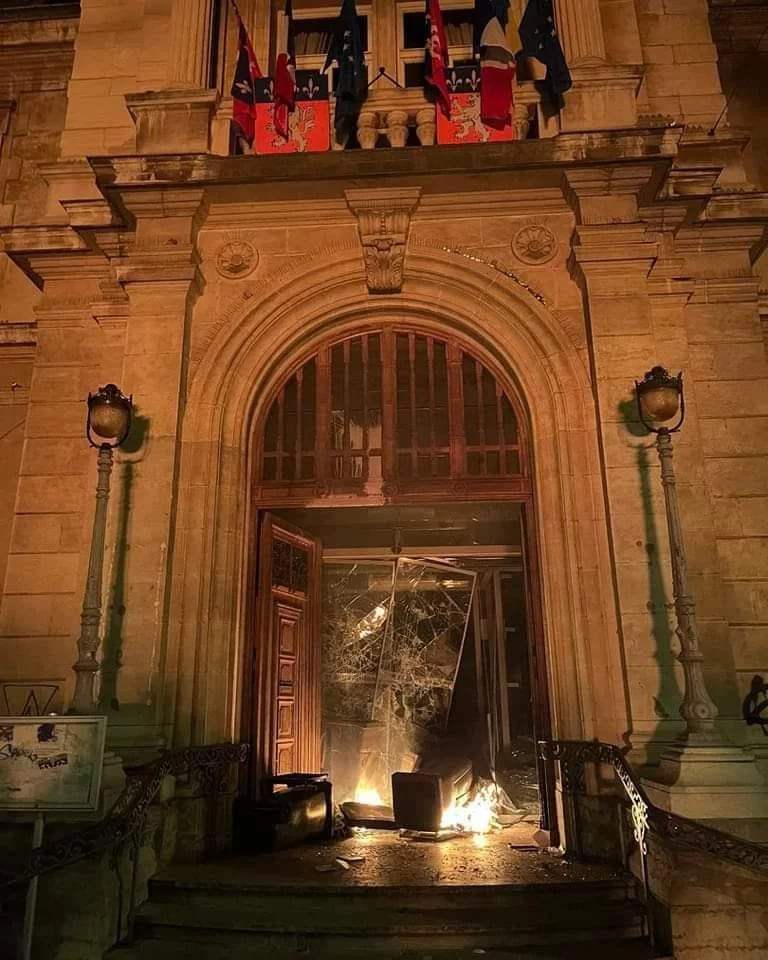 Στη Λυών ξέσπασαν επίσης βίαια επεισόδια από τα οποία δεν γλίτωσε ούτε το δημαρχείο της πόλης, το οποίο κατέστρεψαν στην είσοδό του κουκουλοφόροι.