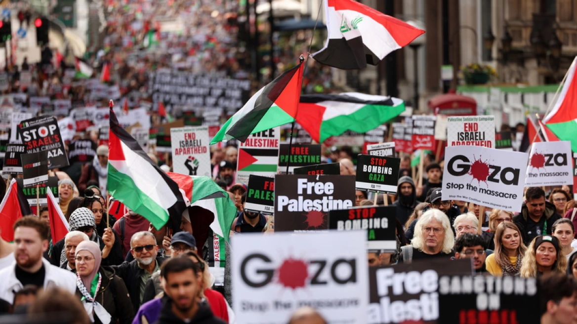 Λονδίνο: Τουλάχιστον 100.000 άνθρωποι συμμετείχαν σε διαδήλωση υπέρ της Παλαιστίνης (βίντεο)