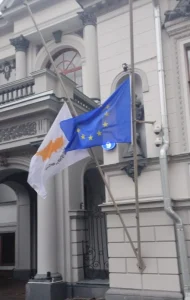 Οι σημαίες στην Πρεσβεία της Κυπριακής Δημοκρατίας στη Μόσχα κυματίζουν μεσίστιες ως ένδειξη σεβασμού και πένθους για τους 143 ανθρώπους που έχασαν τη ζωή τους.