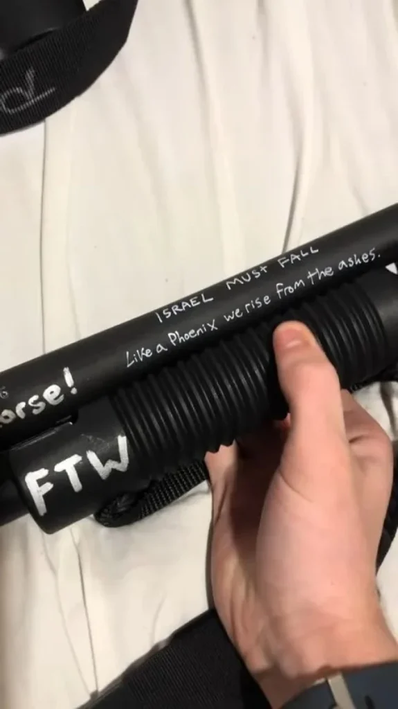 Ένα άλλο μήνυμα γραμμένο σε μια από τις πολλές γεμιστήρες του έλεγε «Καταστρέψτε το HIAS», την εβραϊκή ομάδα βοήθειας προσφύγων, ενώ σε ένα από τα όπλα του ήταν γραμμένο «Το Ισραήλ πρέπει να πέσει, δημοσιεύστε τα αρχεία», μια πιθανή αναφορά στον Τζέφρι Έπσταϊν.