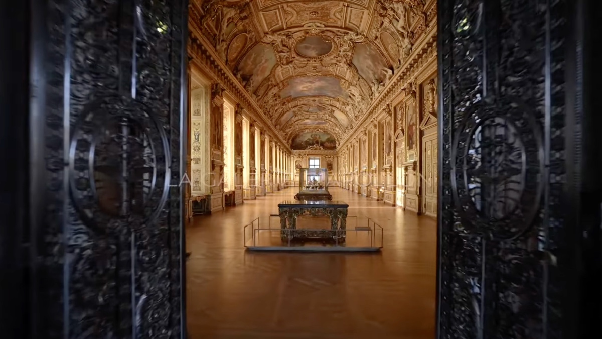 Οι δύο βασικοί ύποπτοι, γνωστοί με τις ονομασίες XH1 και XH2 εισέβαλαν στη Γκαλερί Απόλλωνα του Λούβρου στις 19 Οκτωβρίου και η διάρρηξη σημειώθηκε στις 9:34 το πρωί. Εκεί οι δράστες έσπασαν παράθυρο της γκαλερί χρησιμοποιώντας τροχό.