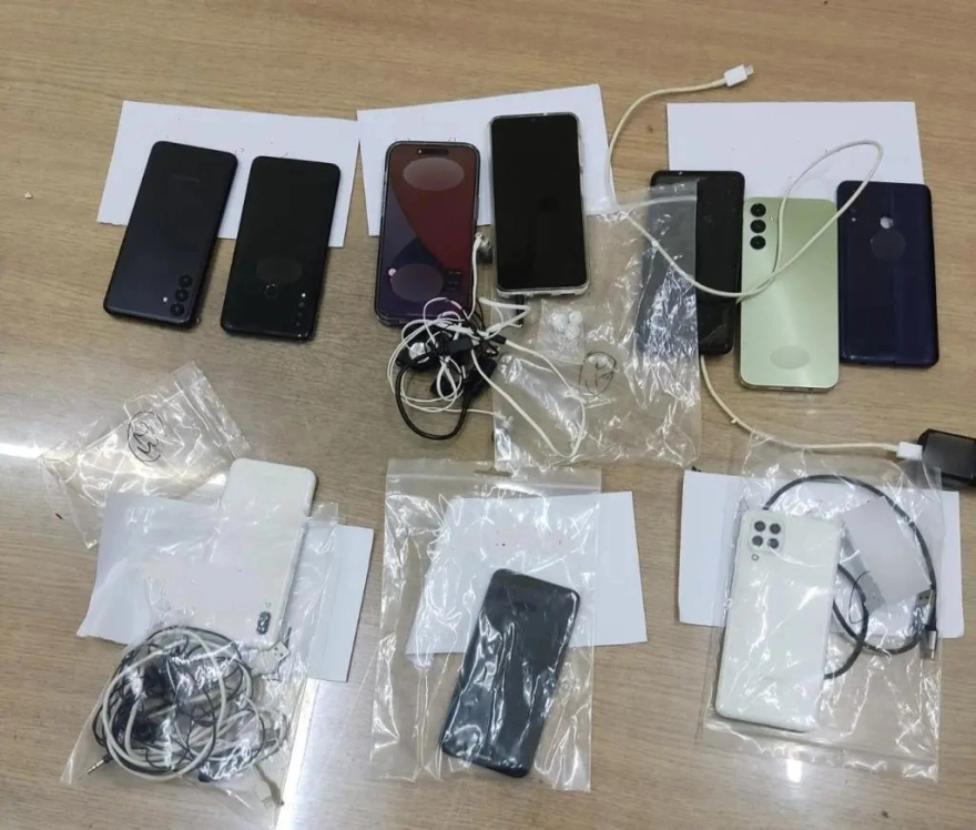 Παράλληλα, βρέθηκαν και κατασχέθηκαν 10 κινητά τηλέφωνα με τα παρελκόμενά τους (hands free, φορτιστές).