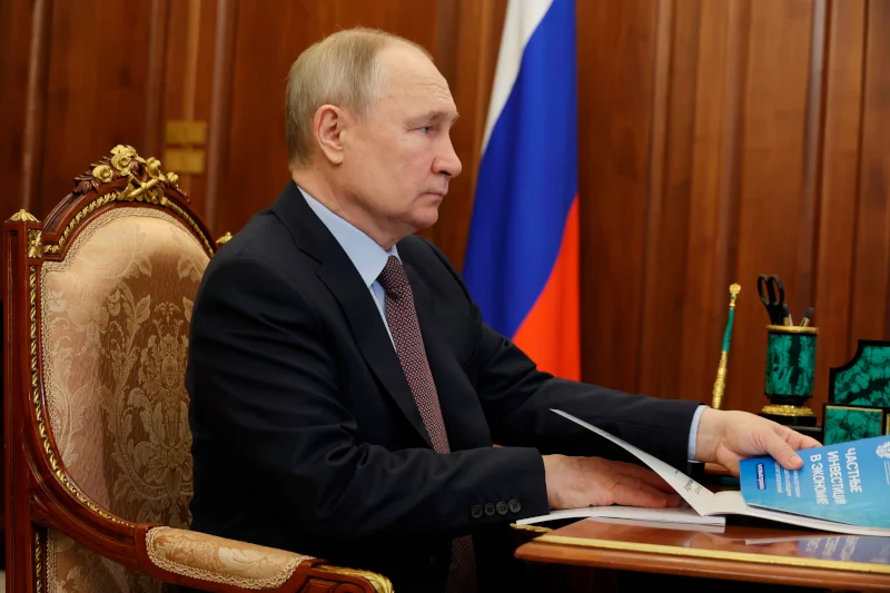 Πλάνα που δείχνουν τον πρόεδρο Βλαντίμιρ Πούτιν κατά τη διάρκεια συνάντησης εργασίας η οποίαπ έλαβε χώρα στο Κρεμλίνο, μετέδωσε η ρωσική δημόσια τηλεόραση.