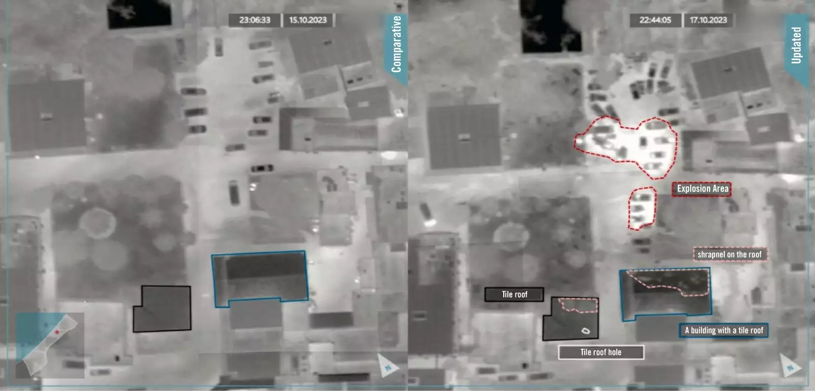 Από την Τρίτη, Παλαιστίνιοι και Ισραηλινοί αλληλοκατηγορούνται για το ποιος φέρει την ευθύνη για το πλήγμα. Ο στρατηγός Ντάνιελ Χαγκάρι, εκπρόσωπος του ισραηλινού στρατού, διαβεβαίωσε ότι δεν υπήρξε κανένα πλήγμα από την ξηρά, τη θάλασσα ή τον αέρα εναντίον του νοσοκομείου αυτού.