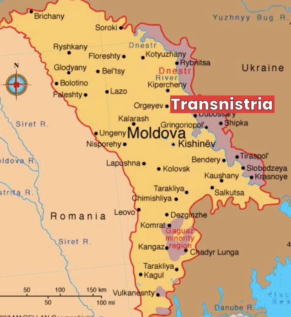 Το 1990 η Υπερδνειστερία διακήρυξε την ανεξαρτησία της από τη Μολδαβία, την σοβιετική δημοκρατία η οποία ανακηρύχθηκε ανεξάρτητη το επόμενο έτος. Ο πληθυσμός της αποτελείται κατά 30% από Ρώσους, ενώ η ετήσια βοήθεια της Μόσχας ανέρχεται σε 1 δισεκατομμύριο δολάρια ετησίως.