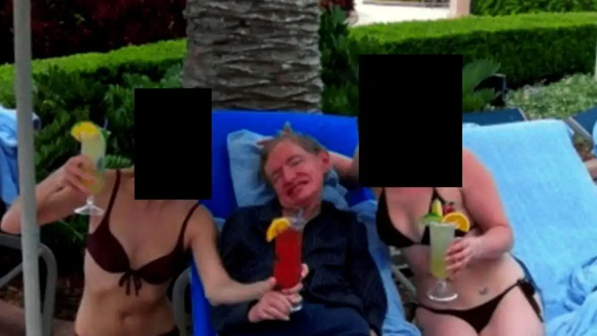 Πρόκειται για μια φωτογραφία από την νέα παρτίδα των εγγράφων της υπόθεσης του Τζέφρι Επστάιν που απεικονίζει τον φυσικό Στίβεν Χόκινγκ να χαμογελά καθισμένος σε μια ξαπλώστρα και να περιστοιχίζεται από δύο γυναίκες με μαγιό που κρατούν στα χέρια τους κοκτέιλ.