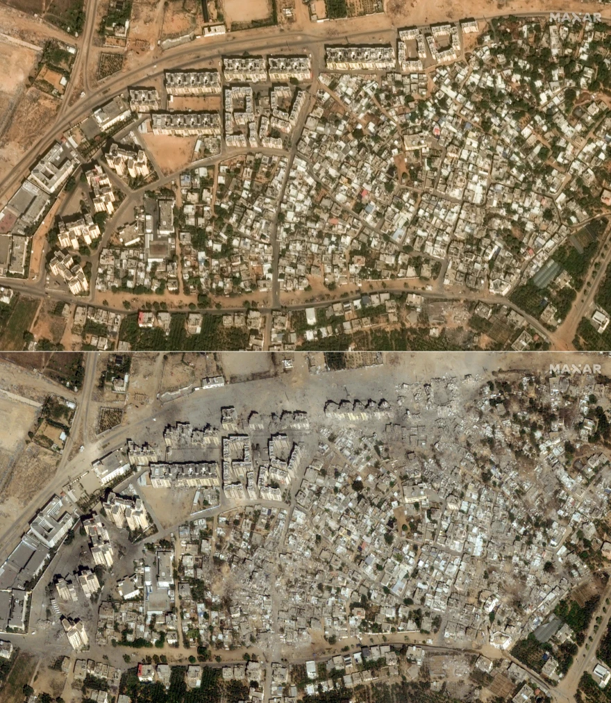 Το «φως» της δημοσιότητας βλέπουν δορυφορικές εικόνες πριν και μετά τους βομβαρδισμούς στη Γάζα.