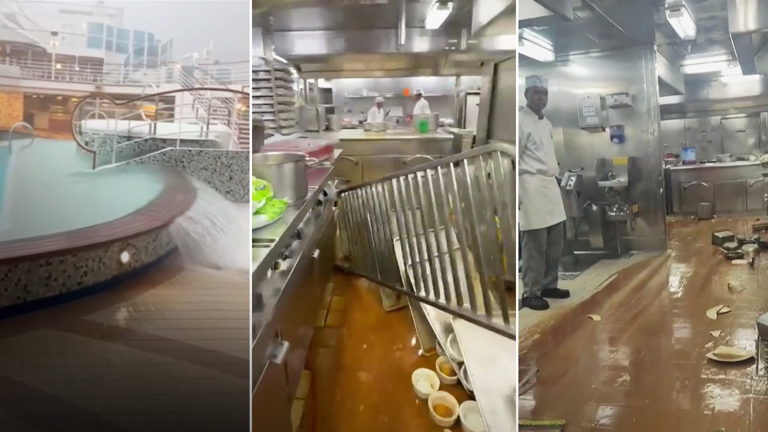 Σε βίντεο που δημοσιεύθηκε από το κανάλι 9 News, καταγράφεται η χαοτική κατάσταση στην κουζίνα του πλοίου, με εργαζόμενους να προσπαθούν να σταθούν όρθιοι, ενώ πιάτα και σκεύη εκτοξεύονταν γύρω τους.