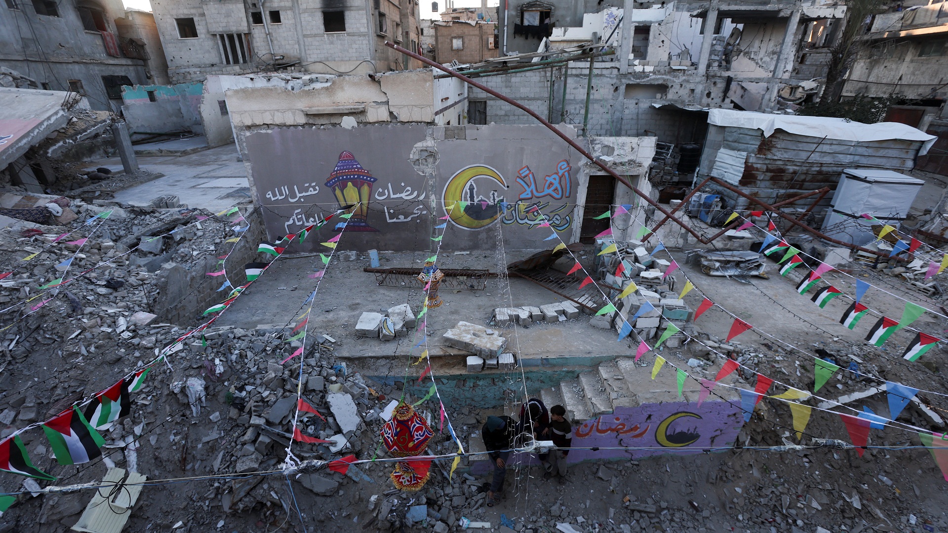 Πλάνα του Γαλλικού Πρακτορείου από ένα κατεστραμμένο σπίτι στη Χαν Γιουνίς δείχνουν ανθρώπους να σβήνουν τις φλόγες που προκλήθηκαν από τον βομβαρδισμό και άλλους να επιθεωρούν τα ερείπια.