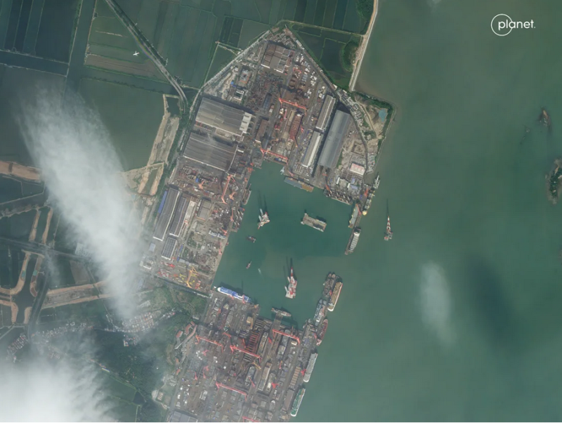 Satellite imagery from Planet Labs shows a vessel with a large, open flat top under construction at Guangzhou Shipyard International on Longxue Island, in the southern province of Guangdong. https://t.co/th9gJTC7Ic