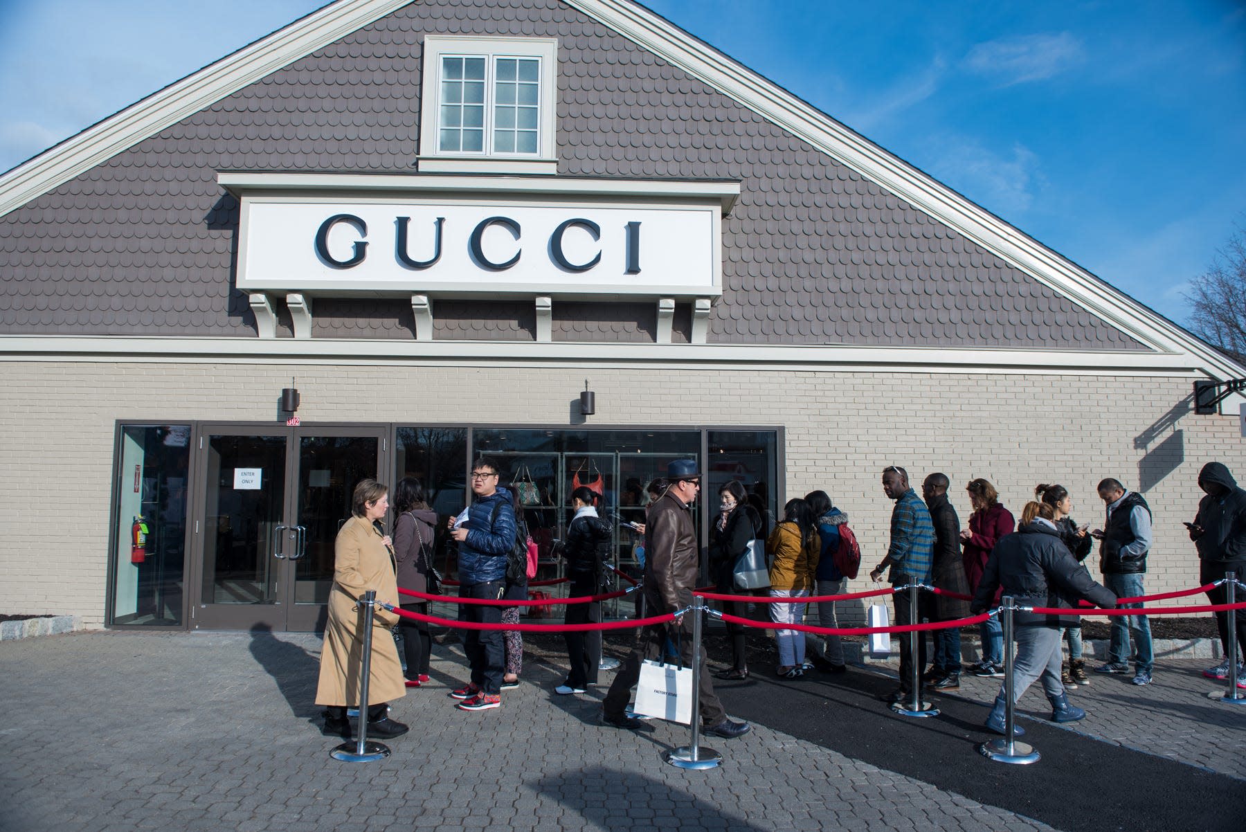 Βίντεο έχει καταγράψει τη στιγμή που τέσσερις κλέφτες αρπάζουν 12 πολυτελείς τσάντες Gucci αξίας 30.000 δολαρίων από κατάστημα στο Woodbury Common Premium Outlets στη Νέα Υόρκη.