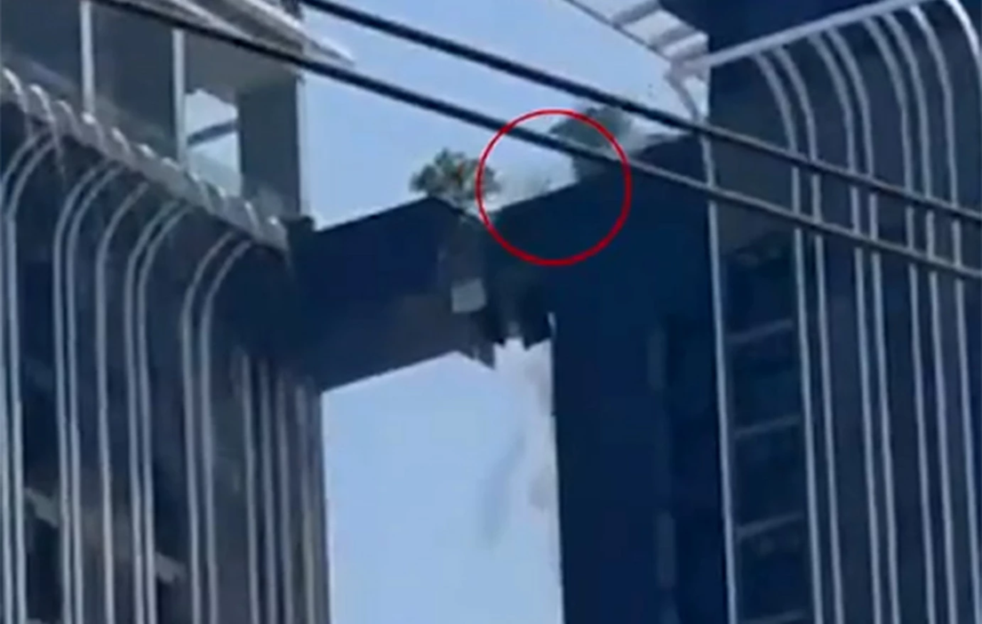 Ο 36χρονος πατέρας, Kwon Young Jun, πραγματοποίησε το άλμα όταν η γέφυρα που συνέδεε το πολυόροφο κτίριο που βρισκόταν με ένα γειτονικό υψηλό κτίριο, κατέρρευσε στην Μπανγκόκ της Ταϊλάνδης, στις 28 Μαρτίου.