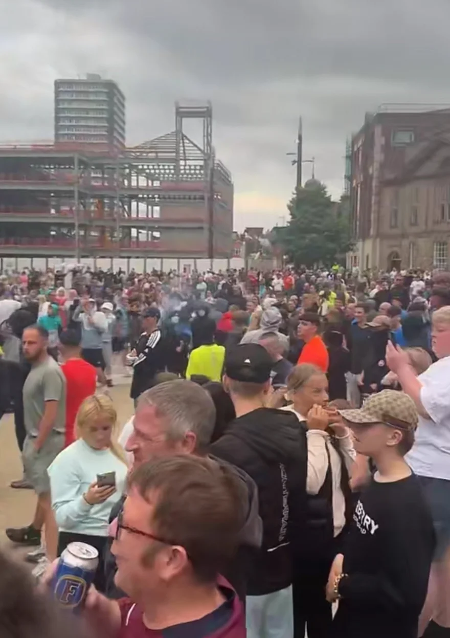 Διαδηλωτές που φώναζαν συνθήματα κατά των μεταναστών επιτέθηκαν με πέτρες εναντίον αστυνομικής δύναμης η οποία είχε αναπτυχθεί κοντά σε τέμενος της πόλης, πυρπόλησαν ένα αυτοκίνητο και σύμφωνα με το BBC προκάλεσαν πυρκαγιά δίπλα στο αστυνομικό τμήμα.