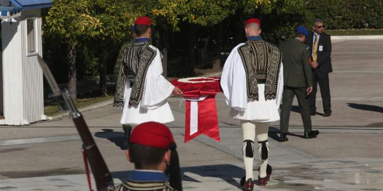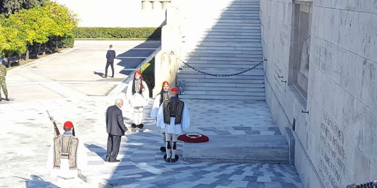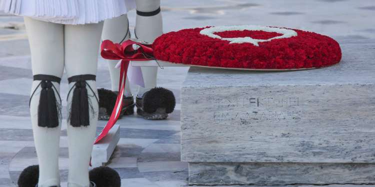 Το στεφάνι που κατάθεσε ο Ταγίπ Ερντογάν στο Μνημείο του Αγνώστου Στρατιώτη δεν ήταν το συνηθισμένο καθώς ήταν κατακόκκινο, στα χρώματα της τουρκικής σημαίας δηλαδή, με την ημισέληνο στο κέντρο.