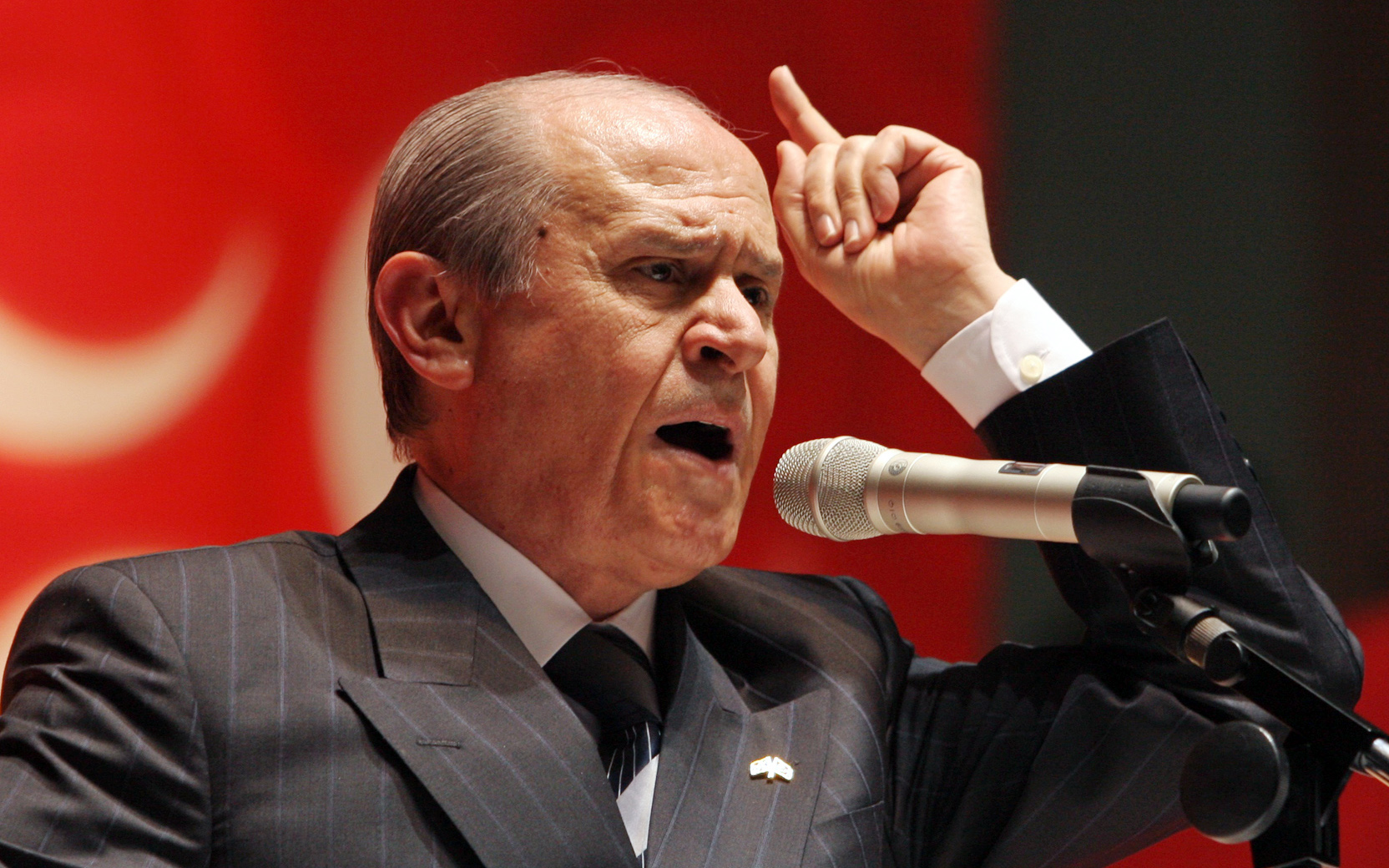 Ο πολιτικός εταίρος του Ρ.Τ.Ερντογάν, ο πρόεδρος του Κόμματος Εθνικιστικής Δράσης ( ΜΗP) Ντεβλέτ Μπαχτσελί, χαρακτήρισε πριν από λίγο το Αιγαίο και την Μεσόγειο τουρκική λίμνη και χαρακτήρισε Ελλάδα και Κύπρο ως «πειρατές» των οποίων «τα κεφάλια θα λιώσει τουρκικός λαός»