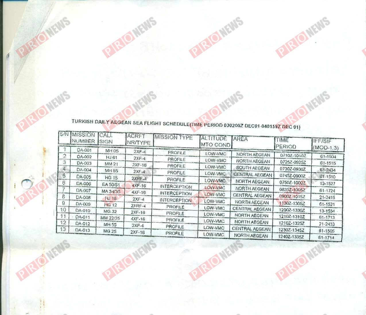 Όπως φαίνεται στο πρόγραμμα αυτό δεν αναγράφονται οι συντεταγμένες εισόδου- εξόδου στο FIR Αθηνών, ούτε το δρομολόγιο εντός του FIR Αθηνών, ούτε το αεροδρόμιο αναχώρησης των τουρκικών αεροσκαφών, θέτοντας στα άχρηστα τα ελληνικά δικαιώματα, συμφέροντα και αρμοδιότητες της Ελλάδας στο FIR Αθηνών, μετατρέποντας έτσι το Αιγαίο σε οικόπεδο εξ αδιαιρέτου μεταξύ Ελλάδας και Τουρκίας.