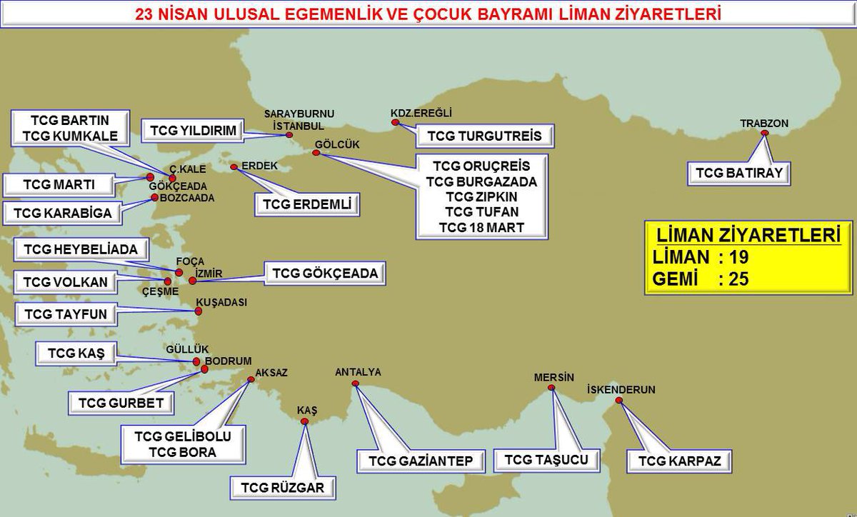 Πάντως, τουρκικά πολεμικά πλοία έχουν «ακροβολιστεί» σε λιμάνια σε Αιγαίο και Α.Μεσόγειο, με αφρομή την ημέρα «εθνικής κυριαρχίας» και την επικείμενη άσκηση «Θαλασσόλυκος-2019» για την οποία οι Τούρκοι λένε πως θα είναι μεγαλύτερη και από την άσκηση «Γαλάζια πατρίδα».
