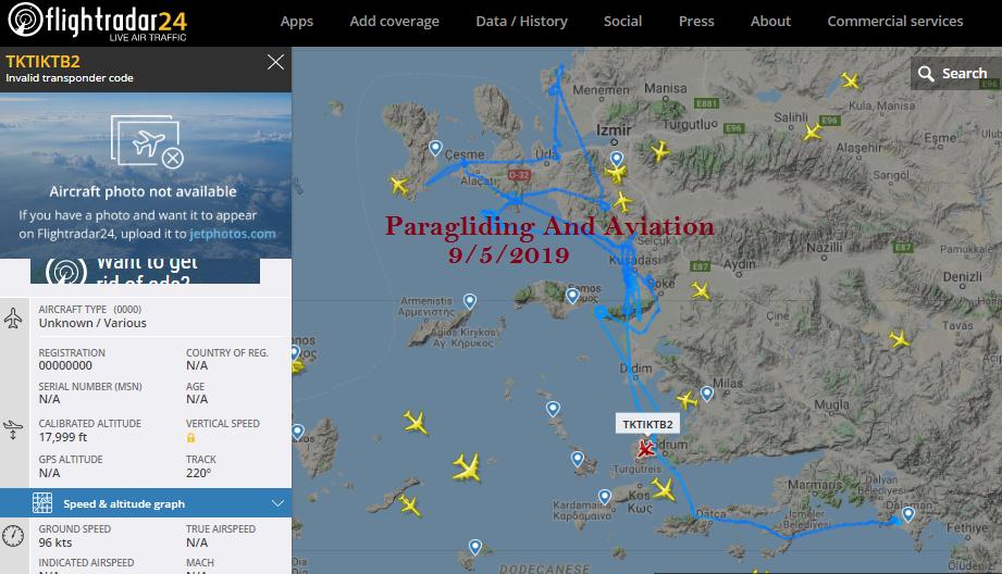 Ταυτόχρονα, η πλατφμόρμα του Flight Radar24 κατέγραφε υπέρπτηση ελληνικού εδάφους (νότια Χίος) από drone Bayraktar TB2 του τουρκικού Ναυτικού! Την αποκάλυψη έκανε ο ιστότοπος Paragliding And Aviation.