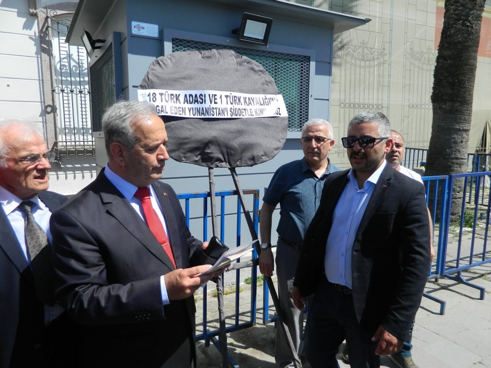 Η συγκέντρωση δεκάδων Τούρκων είχε σαν αντικείμενο τη διαμαρτυρία για την κατάληψη από την Ελλάδα 18 νησιών και μερικών βραχονησίδων στο Αιγαίο.