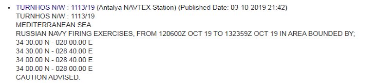 Ίσως έχει όμως ακόμα μεγαλύτερο ενδιαφέρον η κίνηση της ελληνικής πλευράς η οποία αντί να σηκώσει το ζήτημα και να προβεί δε διάβημα προς την Μόσχα και να φτάσει το θέμα μέχρι τον ΟΗΕ, ακύρωσε ή νομίζει ότι ακύρωσε την τουρκική NAVTEX και εξέδωσε για την ίδια ακριβώς περιοχή νομιμοποιητική Navtex για να κάνουν οι Ρώσοι την άσκησή τους.
