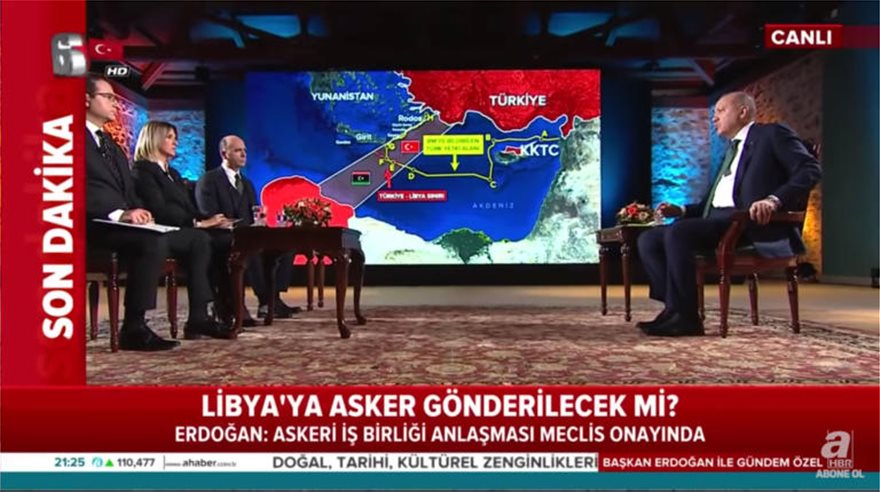 Με τους χάρτες που «σβήνουν» ελληνικά νησιά στο φόντο, προανήγγειλε σε συνέντευξή του σύντομα γεωτρήσεις.