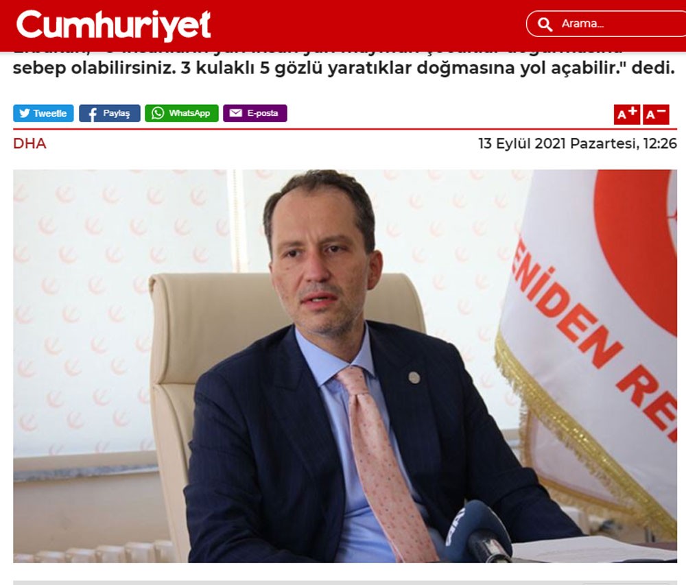 Ο γιος του πρώην πρωθυπουργού της Τουρκίας επιτέθηκε τόσο στην Αθήνα όσο και στον Ερντογάν αναφερόμενος στα «18 νησιά και τους βράχους, που κατέλαβε παράνομα η Ελλάδα» υποστηρίζοντας ότι «η πατρίδα μας είναι υπό ελληνική κατοχή εδώ και χρόνια, αλλά εξακολουθούν να λένε «μπορούμε να έρθουμε ξαφνικά μια νύχτα». Οταν έρθουμε ξανά στην εξουσία δεν θα αφήσουμε ελληνική σημαία σε αυτά τα νησιά και σε αυτούς τους βράχους όπως ο δάσκαλός μας Ερμπακάν έδωσε την εντολή για την Ειρηνευτική Επιχείρηση στην Κύπρο».